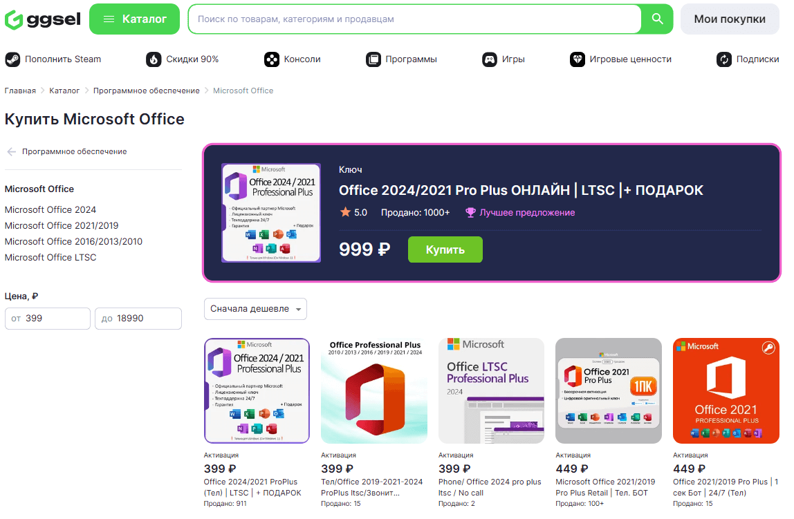 Основные версии Microsoft Excel, которые можно активировать
